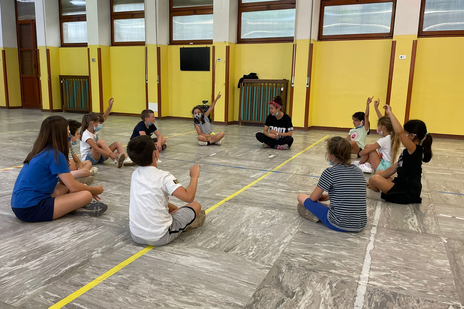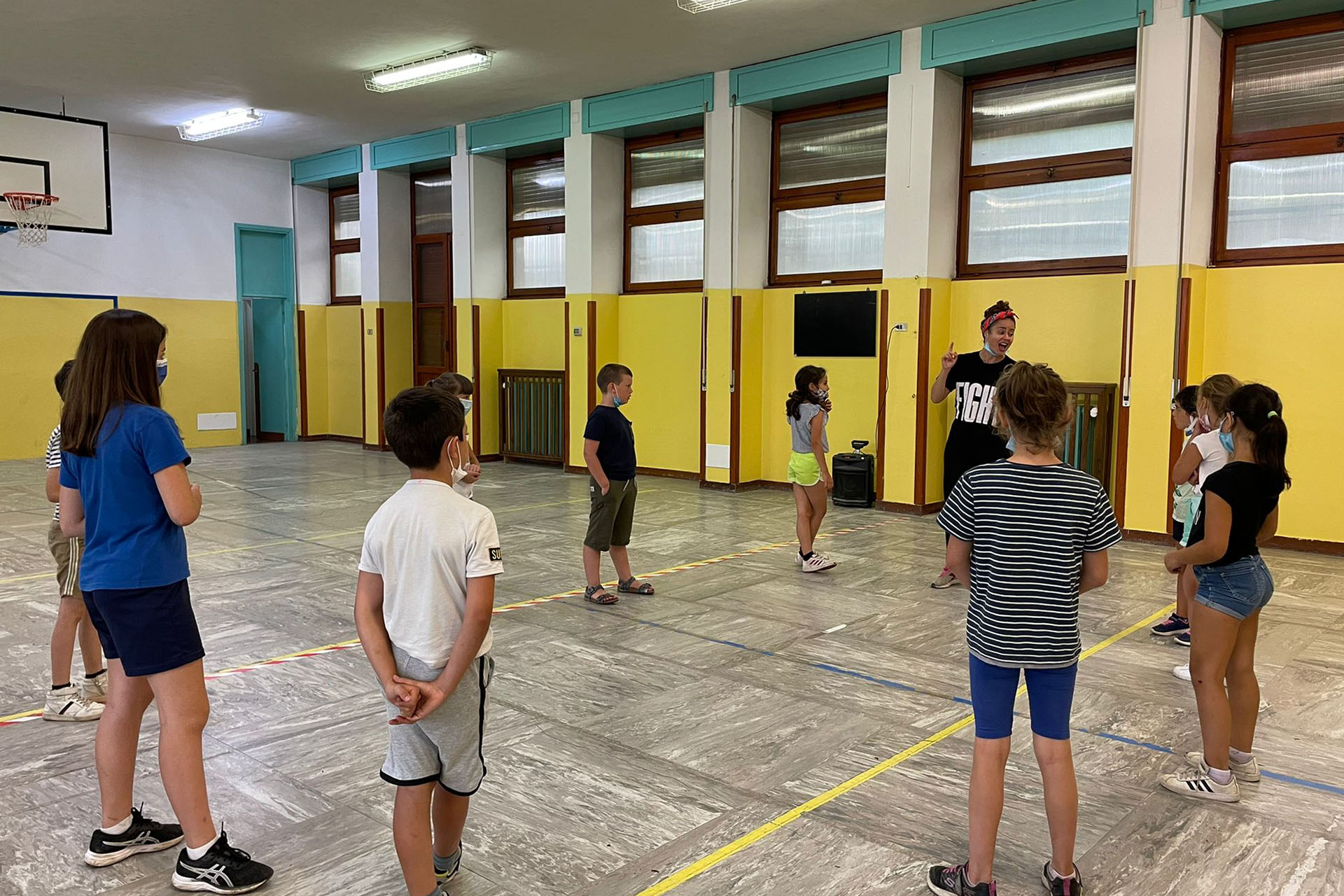 E in ultimo, ma non per importanza…abbiamo accolto a braccia aperte il ritorno di Giorgia Greco, che era già stata con noi nelle settimane precedenti del campus e durante un intervento formativo svoltosi nel corso dell’anno scolastico. Giorgia è tornata tra noi con la sua allenatrice Alessia e in quest’occasione ci ha deliziato con divertenti attività che ci hanno permesso di conoscere alcuni aspetti fondamentali della ginnastica ritmica, una disciplina caratterizzata dalla fluidità dei movimenti, dalla coordinazione, dall’eleganza.E dopo lo sport, via alla creatività e all’inventiva!