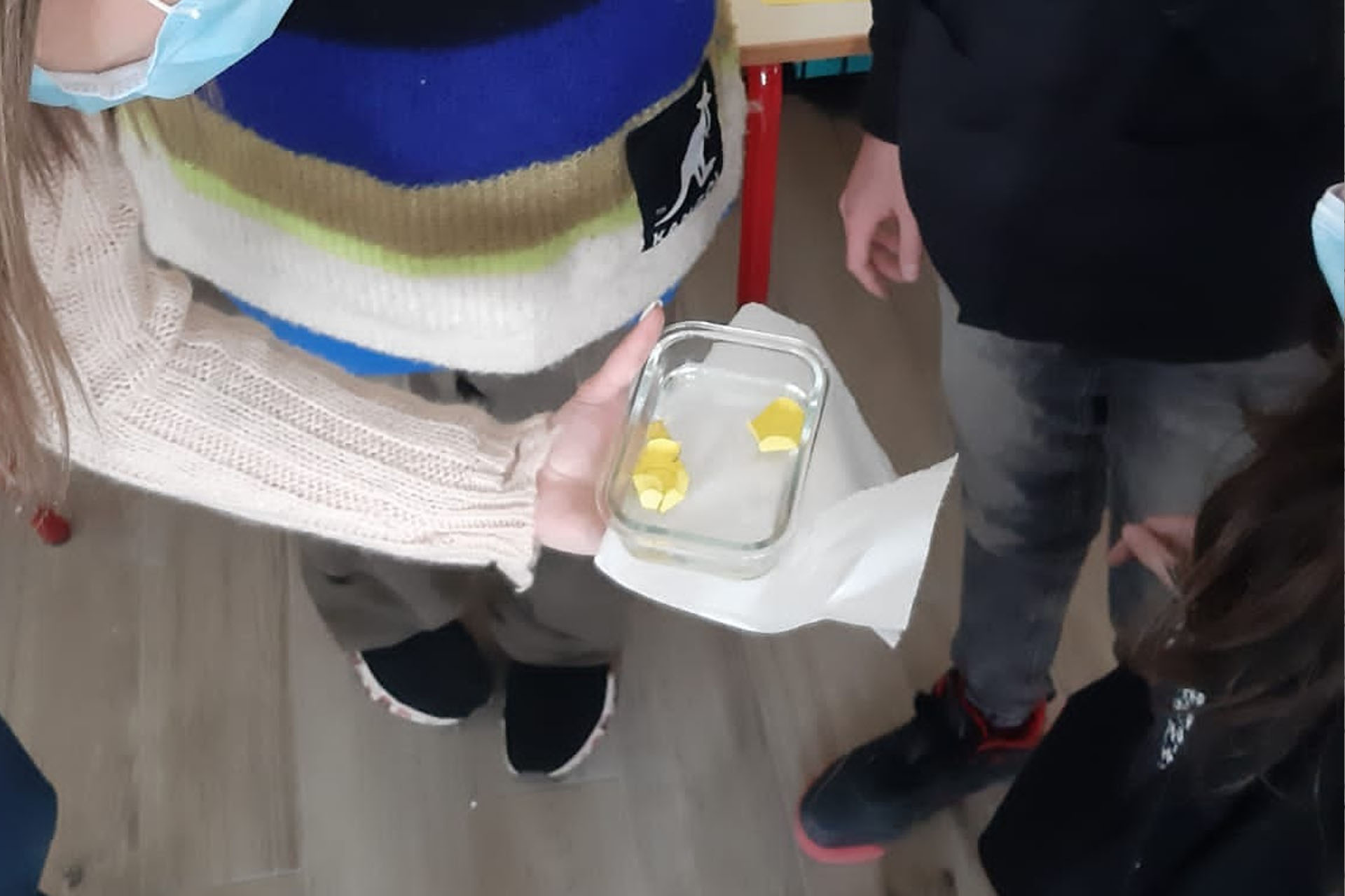 La docente ha voluto interpretare il cambiamento con un  esperimento scientifico. I bambini hanno realizzato un fiore con la carta ed hanno poi sperimentato la capillarità dell’acqua. Con grande stupore, i ragazzi hanno osservato  il fiore di carta piegato che man mano si apriva, come un “fiore vero”.